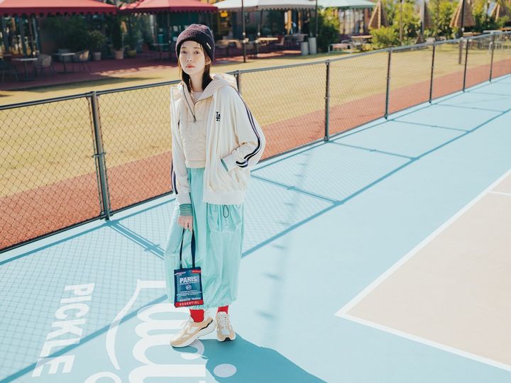 人気沸騰中のジャージスタイルは、やっぱりスポーツテイスト同士、シャカシャカ系スカートと相思相愛♥