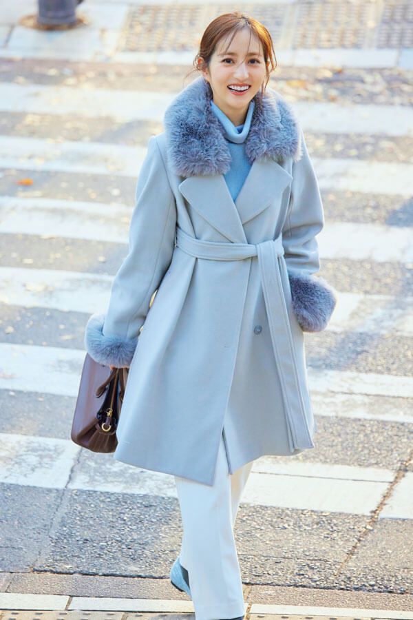 コート¥16,500/RESEXXY ニット¥1,990/神戸レタス パンツ¥8,990/アンフィーロ(オンワード樫山) ピアス¥29,700/プラス ヴァンドーム バッグ¥88,000/コーチ(コーチ・カスタマーサービス・ジャパン) タイツ¥1,320/靴下屋(Tabio) 靴¥3,490/神戸レタス