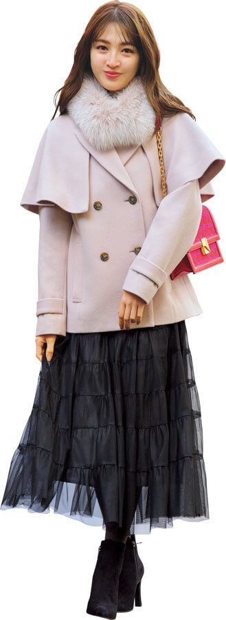 3. 骨格ウェーブはトレンドのケープコートが得意♪×ファーティペットでさらに上重心に!