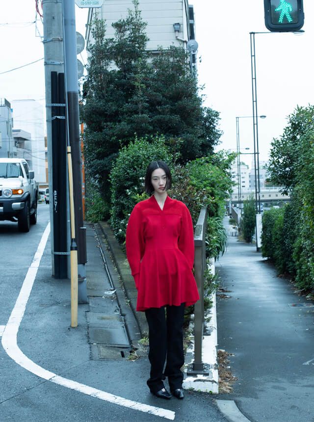 軽やかな視点による日常の新たな発見が背景となり、さまざまな「かたち」から生まれた今季のアイテムと共に映し出されることで、親密さと違和感の心地よい調和が表現された。