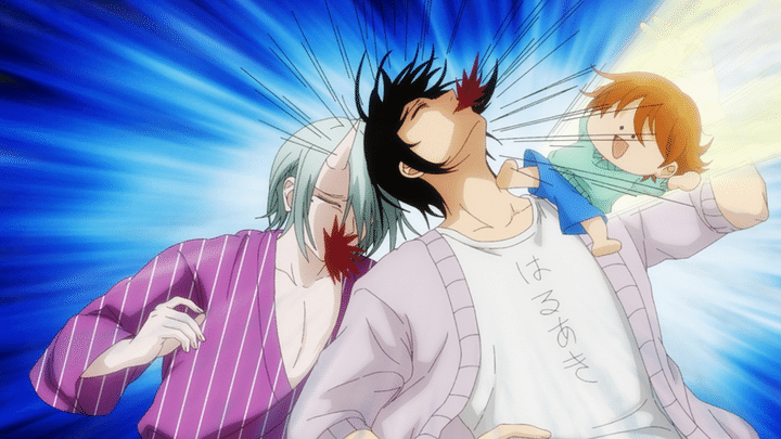 第16話(1月29日深夜放送)で、妖怪教師・秦中飯綱(CV:岩崎諒太)の子どもたちの面倒を、晴明(はるあき)が実家で見ることになった。秦中はかまいたちで、彼の妻は茨木童子。夫婦の子どもは3人おり、長女の6歳・咲鬼は母親と同じく鬼の妖怪だ。