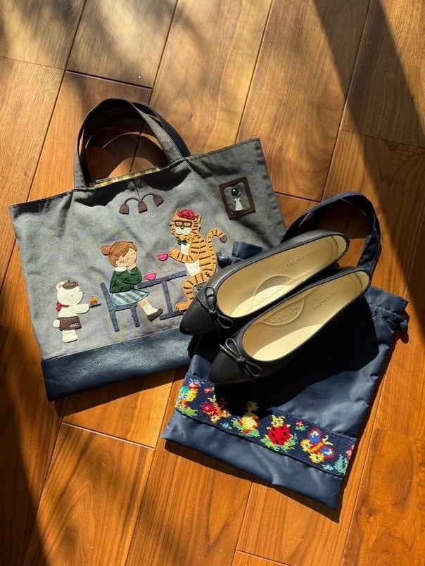 【私立幼稚園入園式】 折り畳みで気に入ったものがなく プチプラのバレエシューズを 室内履きにしました