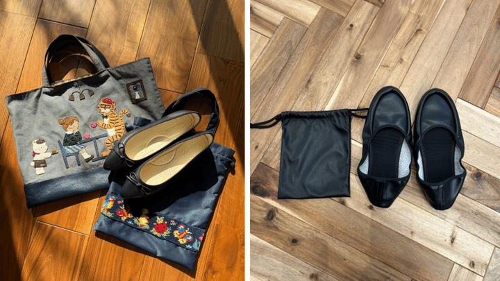 「幼稚園用のスリッパを探しているときに辿り着いたのが楽天。折り畳み式ばかり見ていましたが気に入るものがなかったので、プチプラで見つけたシンプルなバレエシューズを上履き代わりにすることに。小さいバッグのときは折り畳みを持って行くこともありますが、式典のときには形がきれいなものを履きたいというこだわりがあるので、必要に応じて使い分けています」橋中美帆さん/38歳・160㎝(4歳の男の子ママ)