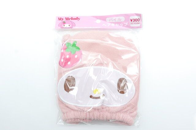 商品名は『パイルヘアキャップ(マイメロディ)』。チャームポイントの頭巾についたいちごのワッペンがなんとも可愛らしいですよね♡