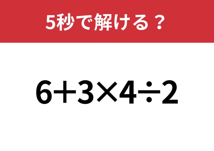 大人なら正解できるはず!「6+3×4÷2」正しく計算できる?