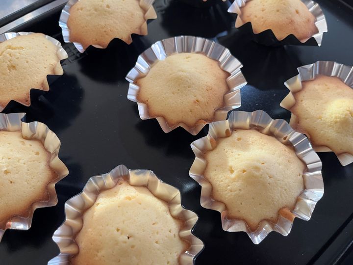 この生地を型に流し入れてオーブンへ。ふっくらマドレーヌが焼けましたよ!