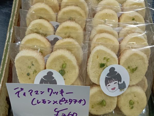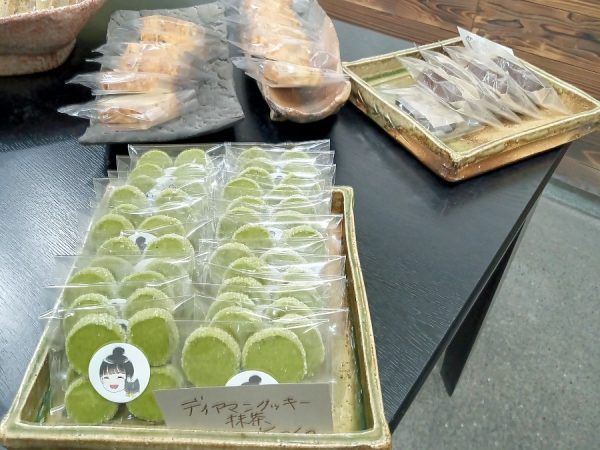 緑色の商品は抹茶のディアマンクッキーです。きれいな色ですね~。