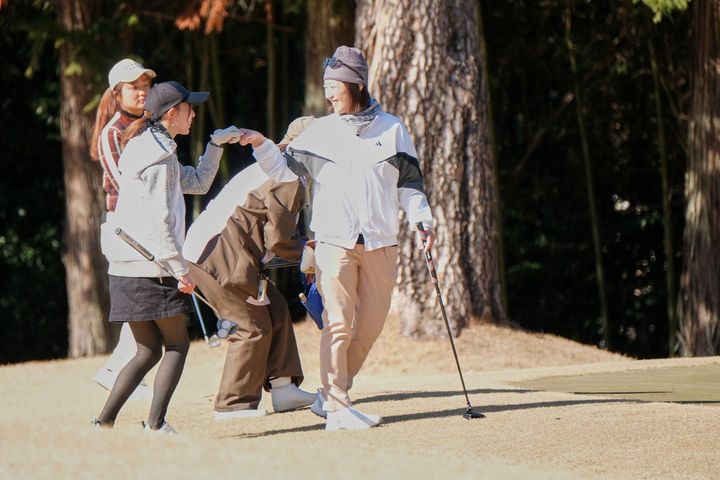 「あまり飛距離は出ない方ですが、比較的曲がらないタイプでもあるので、嵐山カントリークラブのような林間コースは相性が良いと考えていました。前半は安定したプレーができて、パープレー(36ストローク)で回れましたが、後半はショートゲームに悩まされてボギーが重なってしまいました。やはりアプローチが上手くないとスコアがまとまらないコースで、すごく難しかったです。でも、キレイなコースで天気も良かったですし、寒いのを覚悟で来たのでありがたかったです」