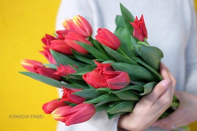 12月から4月にかけて生花店に並ぶチューリップ。春の訪れを感じる赤のチューリップは、「愛の告白」という告白そのままの意味を持っています。
