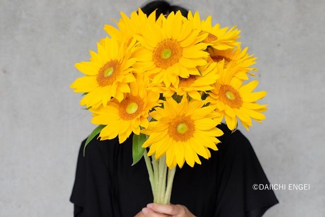 ロマンチックな花言葉を持つヒマワリは、初夏から秋が最盛期ですが、一年を通して出回っています。種類によって花びらの形や色、中心部の色などが異なるので、お気に入りのヒマワリで花束をつくってみるのもよいでしょう。