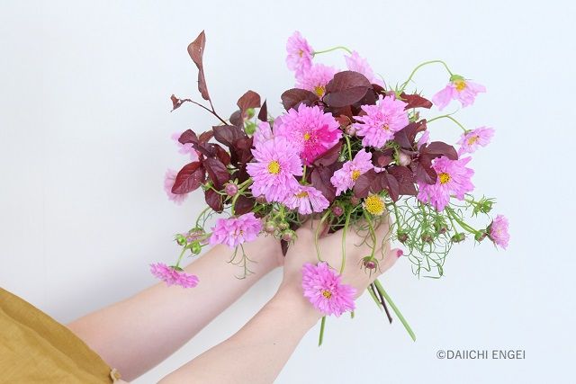 「プラスONEの感動」をモットーに、花と緑でお客さまに感動を届けている第一園芸。花束やアレンジメントなどの花の販売に加え、ウエディングパーティやイベント会場での装花事業、オフィスや商業施設などの空間デザイン、環境緑化事業と、花と緑に関する多くの事業を展開する。特別な数で贈るローズブーケが好評のオンラインショップや、バラにまつわる話も出てくる暮らしの楽しみ方を提案するサイト『花毎(はなごと)』も公開中。