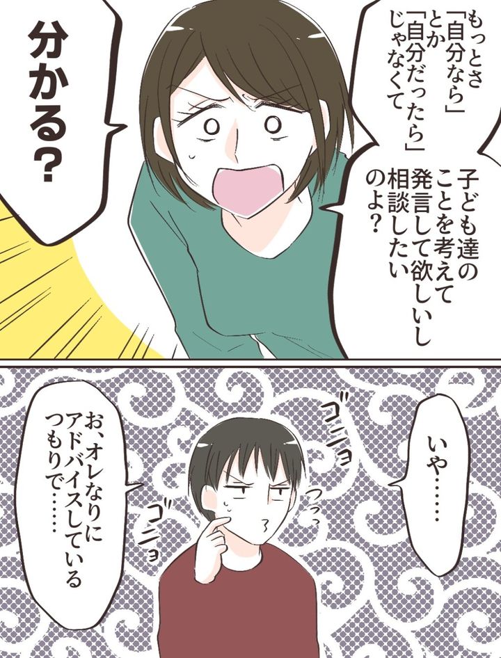 3. 子どもを見ていない夫のアドバイスは求めていない。オレ理論がしんどい[6]|ママ広場マンガ