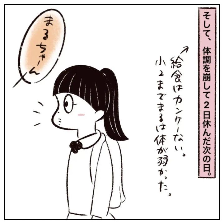 そして、給食は関係ないものの、体が弱かったまるさんが体調を崩して2日間休んだ次の日のこと。「まるちゃーん」と声をかける人が。