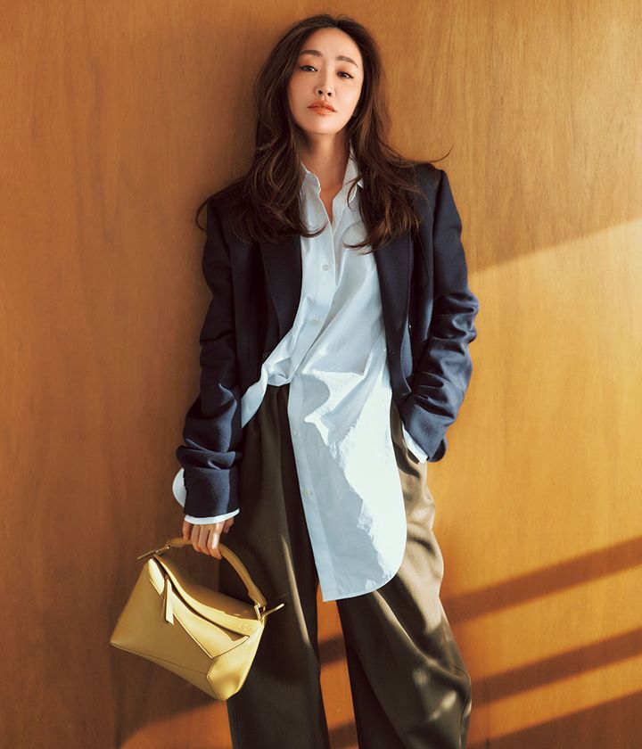美容家としてエレガントなイメージが強いかもしれませんが、実は無類のジャケット好きで所有枚数は100着超え! ブレない偏愛アイテムとして、投資も惜しくありません。大好きなLOEWEは息子とシェアを言い訳に(笑)。一瞬の高揚感は貰えても、何ターンか着ても結局使わなくなる……。ファッションではそういう買物の仕方は避けるようになりました。LOEWEのジャケットはあえてメンズを。マニッシュなオーバーシルエットを纏うことで女性が持つやわらかさや色っぽさが引き立つ気がします。