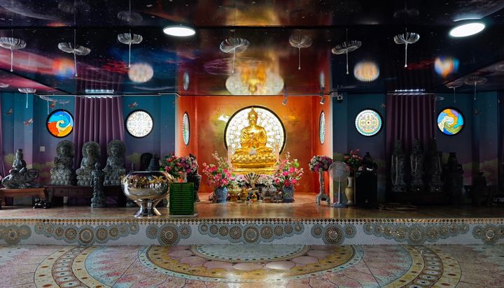 仏塔の中に佇む空間 ステンドグラスに宇宙が煌めく