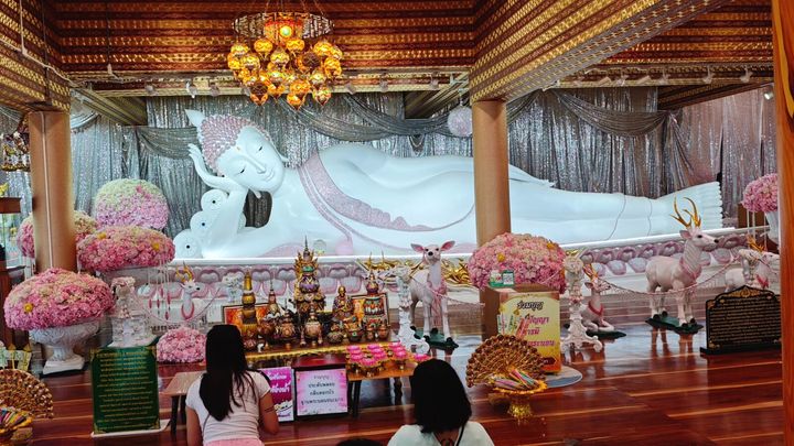 主人の内部にはピンクの衣が装飾された貴重な寝釈迦