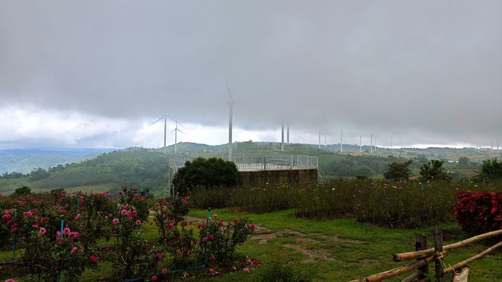 道中は豪雨に打たれながらも、奇跡的な晴れ間の間にたどり着いたのが「Rai GB Wind Turbine Farm, Khao Khom(カオコーのライGB風力発電所)」。