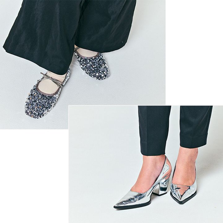 黒パンツコーデは「シルバー靴」が被りオシャレ!