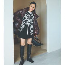 ダウンジャケット¥67,100〈BERENICE.〉タンクトップ¥15,400〈サードマガジン×ミコモリ×キャサリンハムネット〉(ともにサードマガジン)ジャケット¥69,300(ロエフ/エイチ ビューティー&ユース)スカート¥30,800(SEA/エスストア)バッグ¥30,800〈TOV〉ブーツ¥55,000〈オデット エ オディール〉(ともにオデット エ オディール 新宿店)