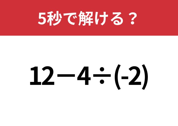 マイナスの計算って覚えてる?「12−4÷(-2)」5秒で解ける?
