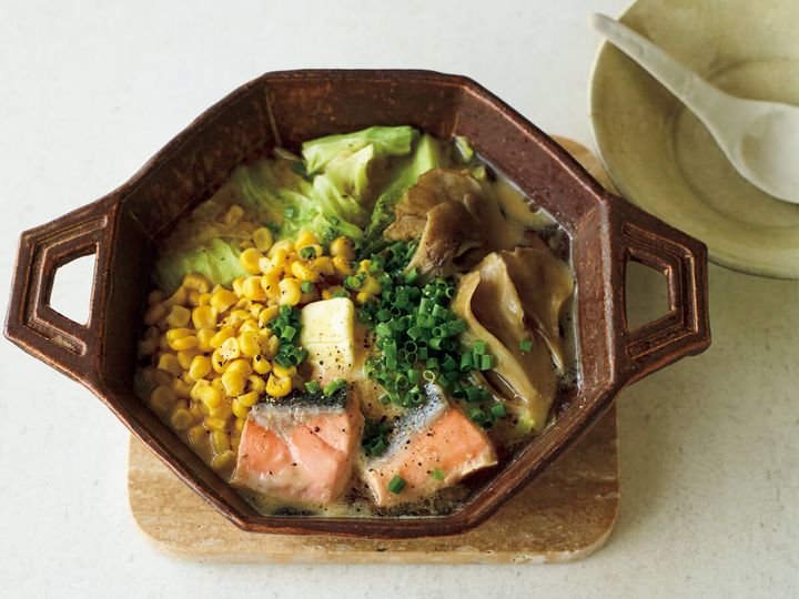 北海道の定番の味が絶品!【鮭のみそバターコーン鍋レシピ】