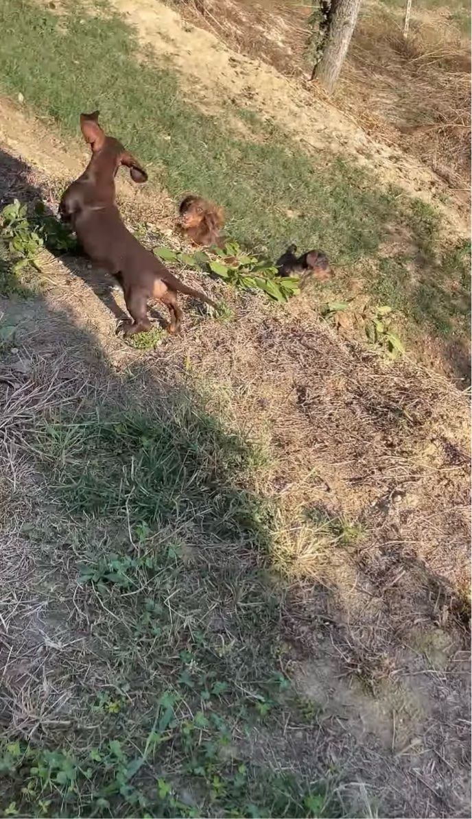 3. 駆け回って遊んでいたダックスフンドにハプニング!斜面を駆け下りようとしたら・・コロコロ転がっていった!?【海外・動画】