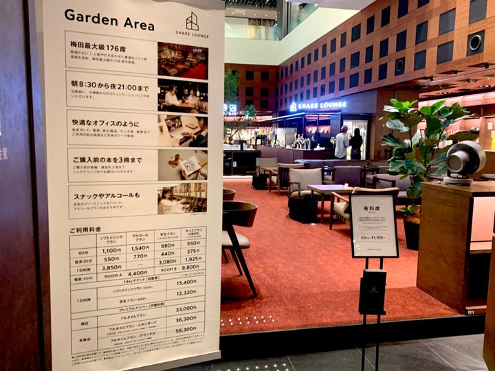 この蔦屋書店には、ゆったりとした有料ラウンジもあります。