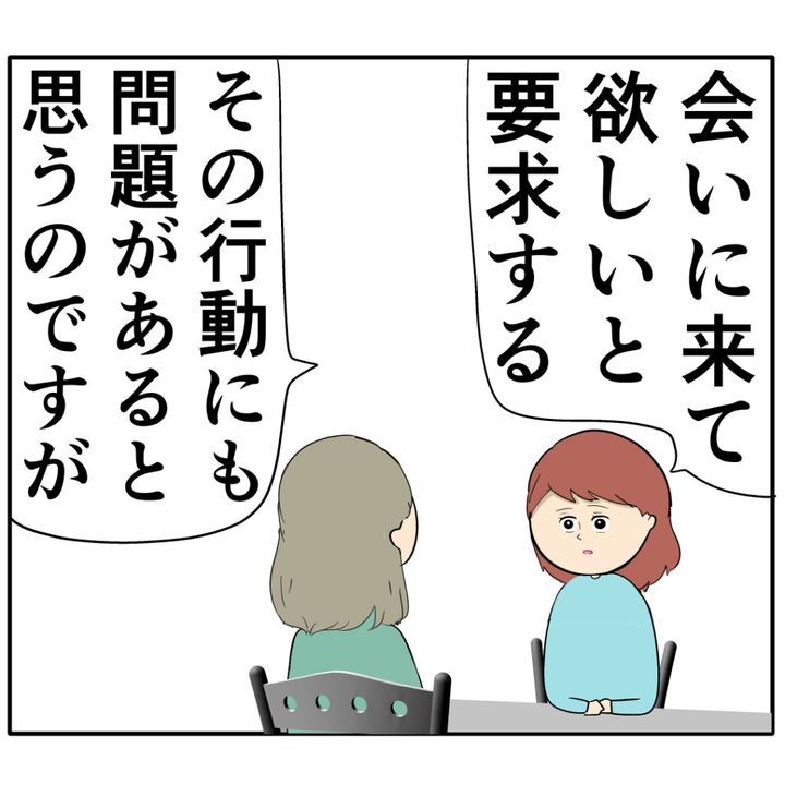 「会いに来て欲しいと要求する、その行動にも問題があると思うのですが」とめいさんがジュリ実さんを真っ直ぐ見つめて言いました。