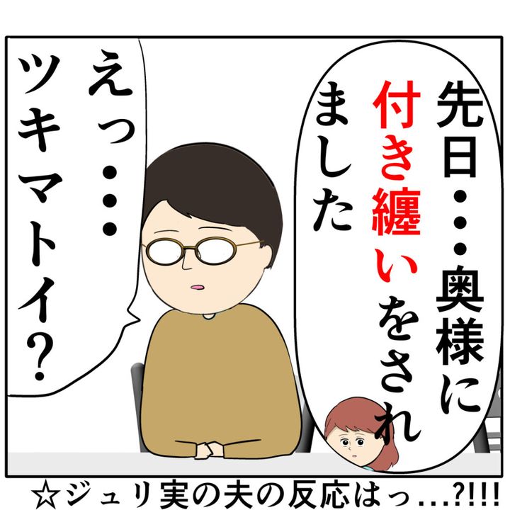 「先日・・奥様に『付き纏い』をされました」と話すめいさんに「えっ・・ツキマトイ?」旦那さんが驚いて言いました。
