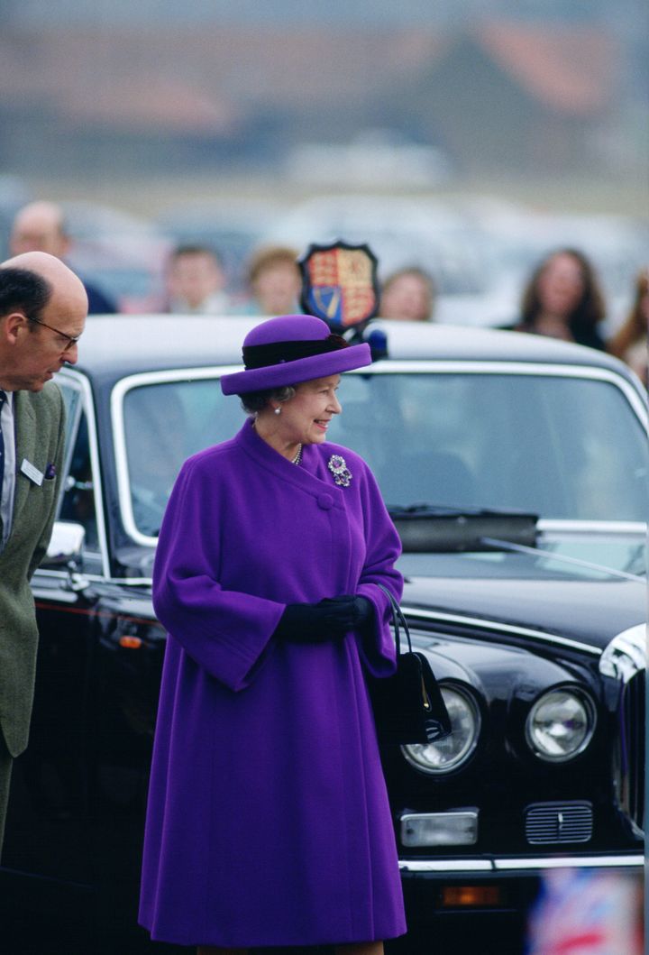 翌1992年2月に即位40周年を記念してノーフォークを訪問したときも、同じブローチを身につけていました。