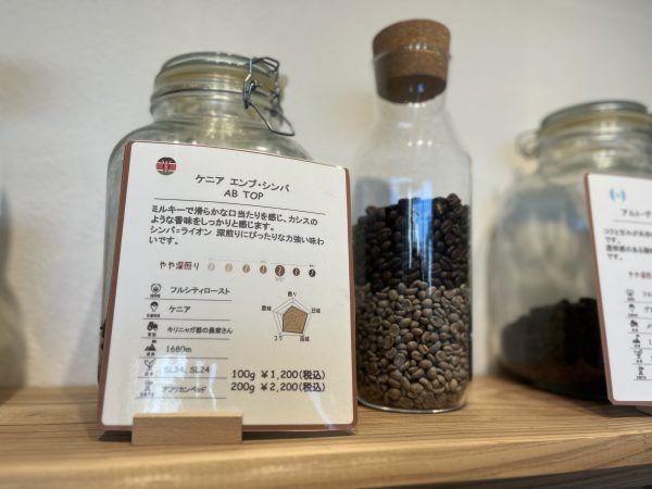 ドリンクメニューは、自家焙煎コーヒーを中心に、カフェオレや、ハニーミルクコーヒーなど。朝煎り~深煎りも選べました。この日のチョイスはケニア産のこちら!