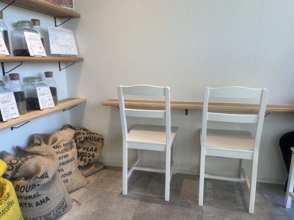 店内には、イスが4つとベンチが置かれていて、イートインでもコーヒーをいただけます。