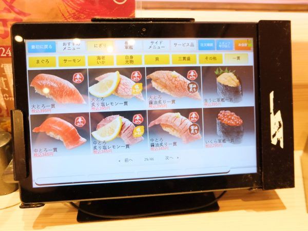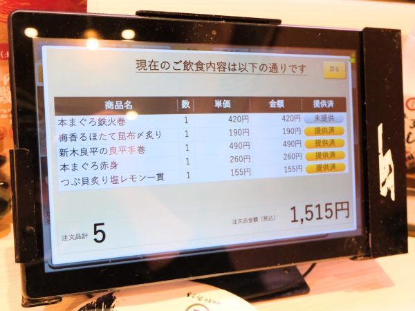 お店によって違うタッチパネルのシステムが、途中で注文内容や提供済か否か確認できるのも、わかりやすかったです。