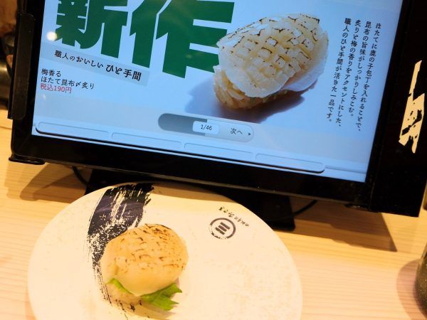 梅の味と大葉の風味、昆布の旨みも相まってさっぱり爽やか。これが回転寿司で食べられるなんてスゴイですね。 (現在は販売終了)