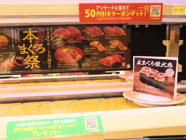 3. 【ビーンズ武蔵浦和】本格的なお寿司が手軽に味わえる「回転寿司みさき」は赤シャリがポイント!肉厚のネタがうんま~