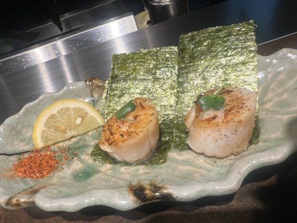 ぷりぷり新鮮なホタテを鉄板焼きでこんがりと。