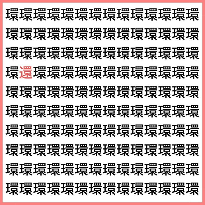 たくさんの「環」の中に、1文字だけ違う漢字が混ざっています。
