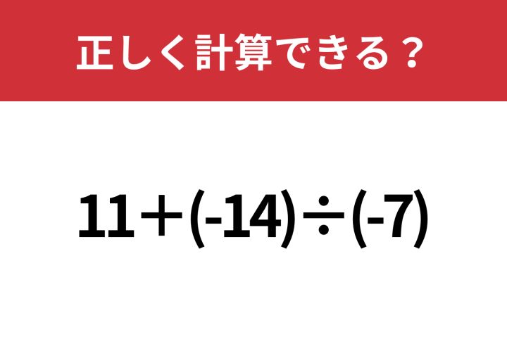 マイナスの計算には注意して!「11+(-14)÷(-7)」正しく計算できる?