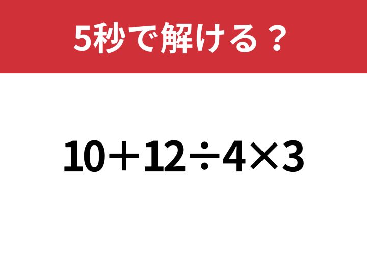 3. 大人なら正解できるはず?「10+12÷4×3」5秒で解ける?