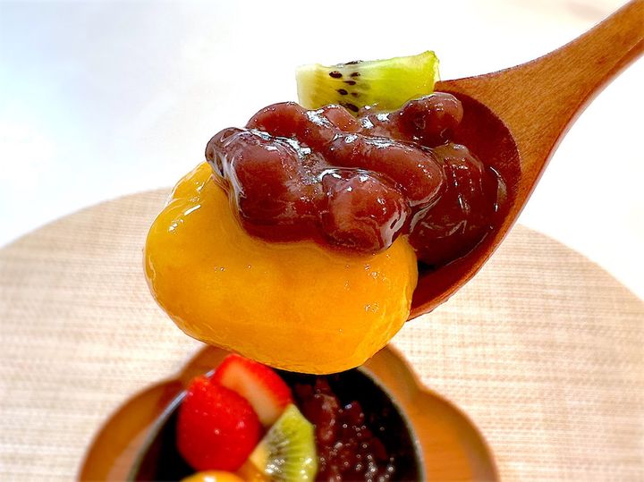 シロップとあんこが白玉にからんで、口の中でとろける〜。