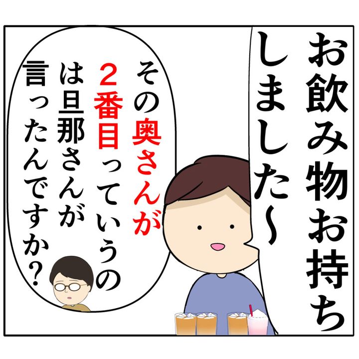 すると、「お飲み物お持ちしました~」と、飲み物を持った店員さんがやって来たにも関わらず、「その『奥さんが2番目』っていうのは、旦那さんが言ったんですか?」と空気も読まずに話す旦那さん。