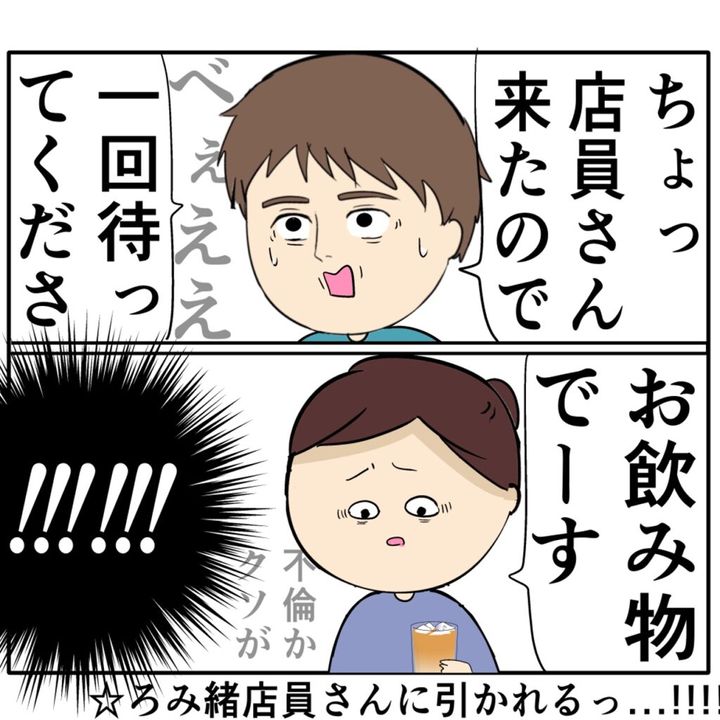 ろみ緒さんが慌てて「ちょっ・・店員さん来たので、一回待ってくださ・・」と言いかけるも、「お飲み物でーす」完全に話を聞いていた店員さんが、引きつった表情で飲み物を差し出したのでした。