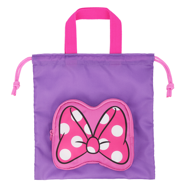 サイドの紐を締めると巾着型にもなるトートバッグ。リボンの形のポケット付きです。
