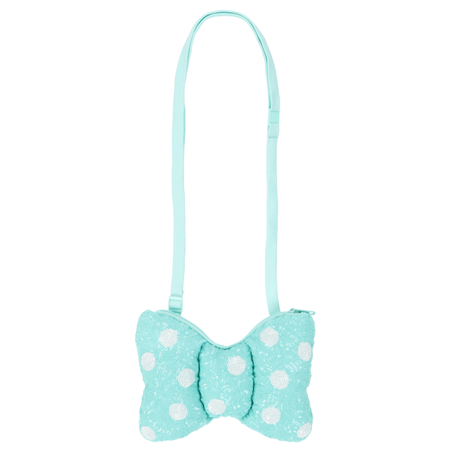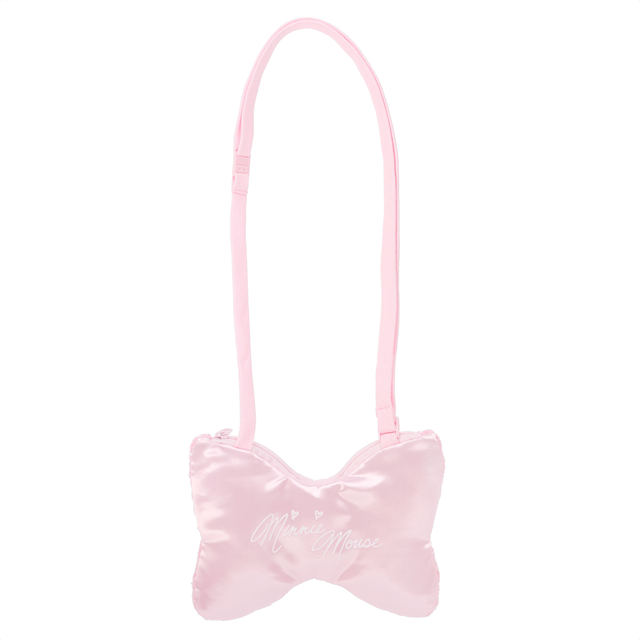キュートなリボンの形のショルダーバッグはコーデのポイントにぴったり。キラキラとしたスパンコール付きです。