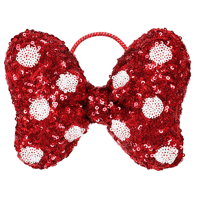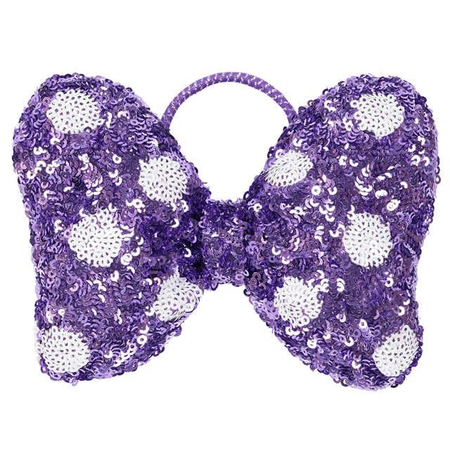 キラキラとしたスパンコールがついたリボンの形のヘアゴム。レッド、ピンク、パープルの3色展開で、おそろいでつけるのも可愛いですね。