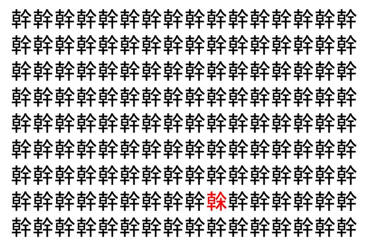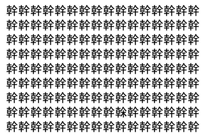 2. 【脳トレ】「幹」の中に紛れて1つ違う文字がある!?あなたは何秒で探し出せるかな??【違う文字を探せ!】