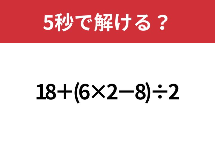 3. 大人でも正解できないかも!?「18+(6×2−8)÷2」5秒で解ける?