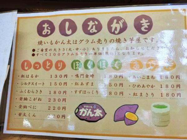 ちなみに… こちらの「焼き芋 かん太」はグラム売りなのですが、お値段がとってもリーズナブルで、お会計の時に「え!安っ!」と素で声が出てしまいました(笑)