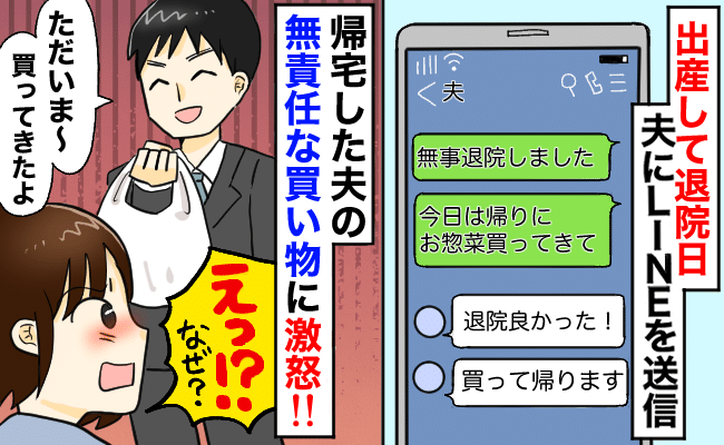 3. 「えっ?お惣菜を頼んだのに買ってきたのは…」退院当日の夕食を夫にお願い。まさかの展開に思わず絶句