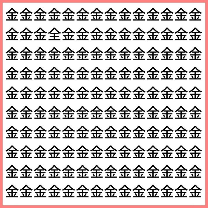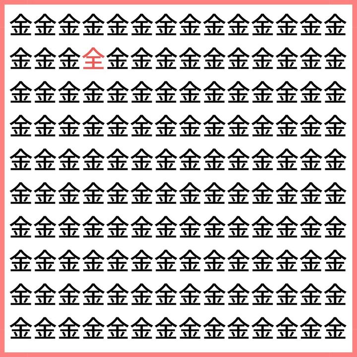 たくさんの「金」の中に、1文字だけ違う漢字が混ざっています。
